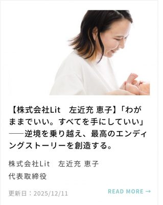 【株式会社Lit 左近充 恵子】「わがままでいい。すべてを手にしていい」――逆境を乗り越え、最高のエンディングストーリーを創造する。